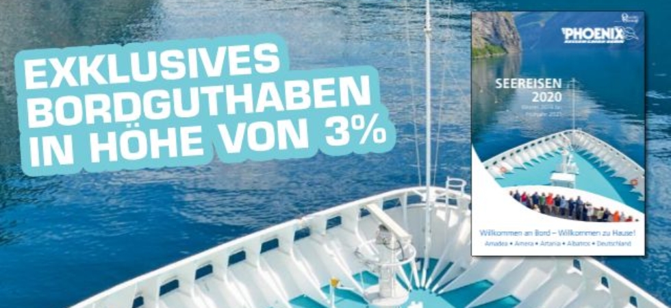 0 Reisen 2.02.2019 Kreuzfahrten: Phoenix-Frühbucher-Special Erhält auf ausgewählten Routen einen Frühbucherrabatt von 3% des regulären Reisepreises 274 €Zum limitierten Angebot...